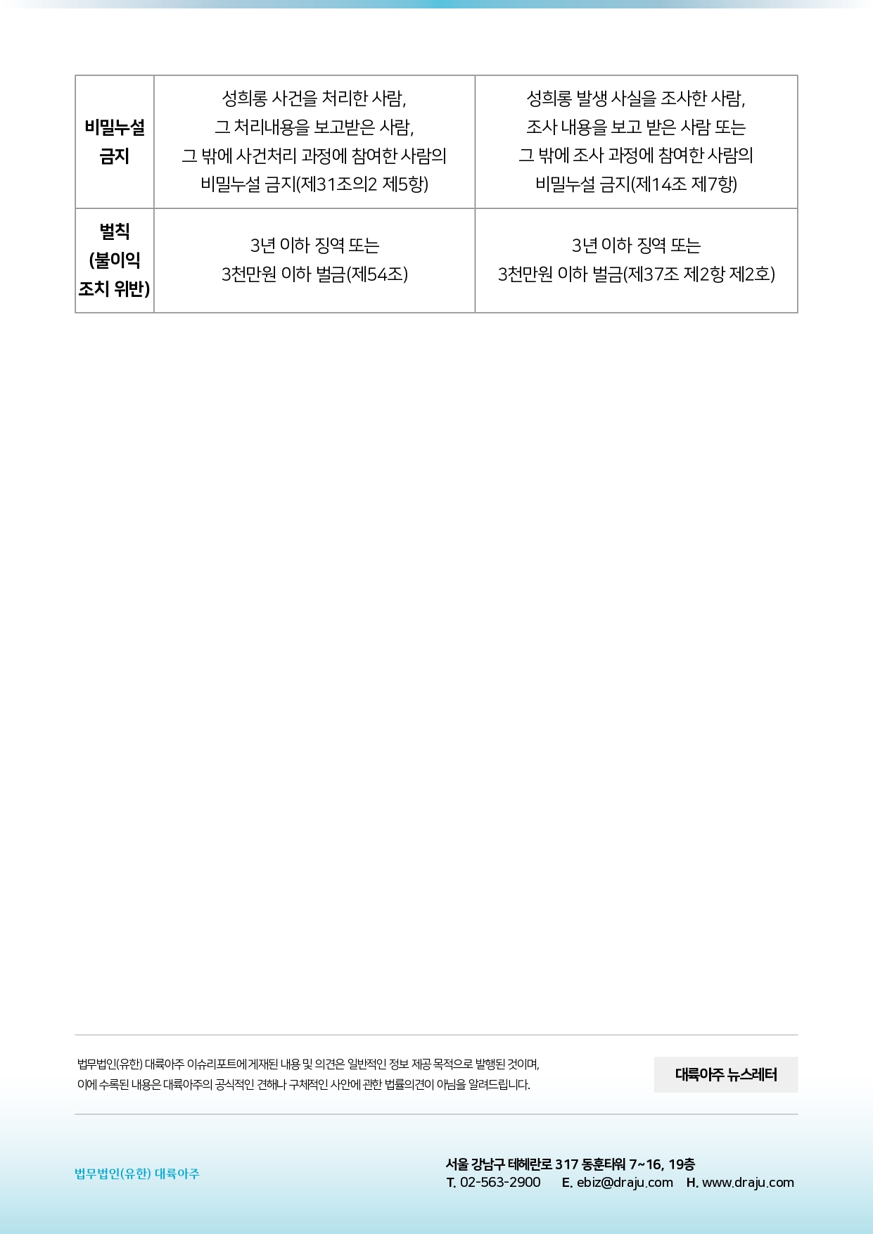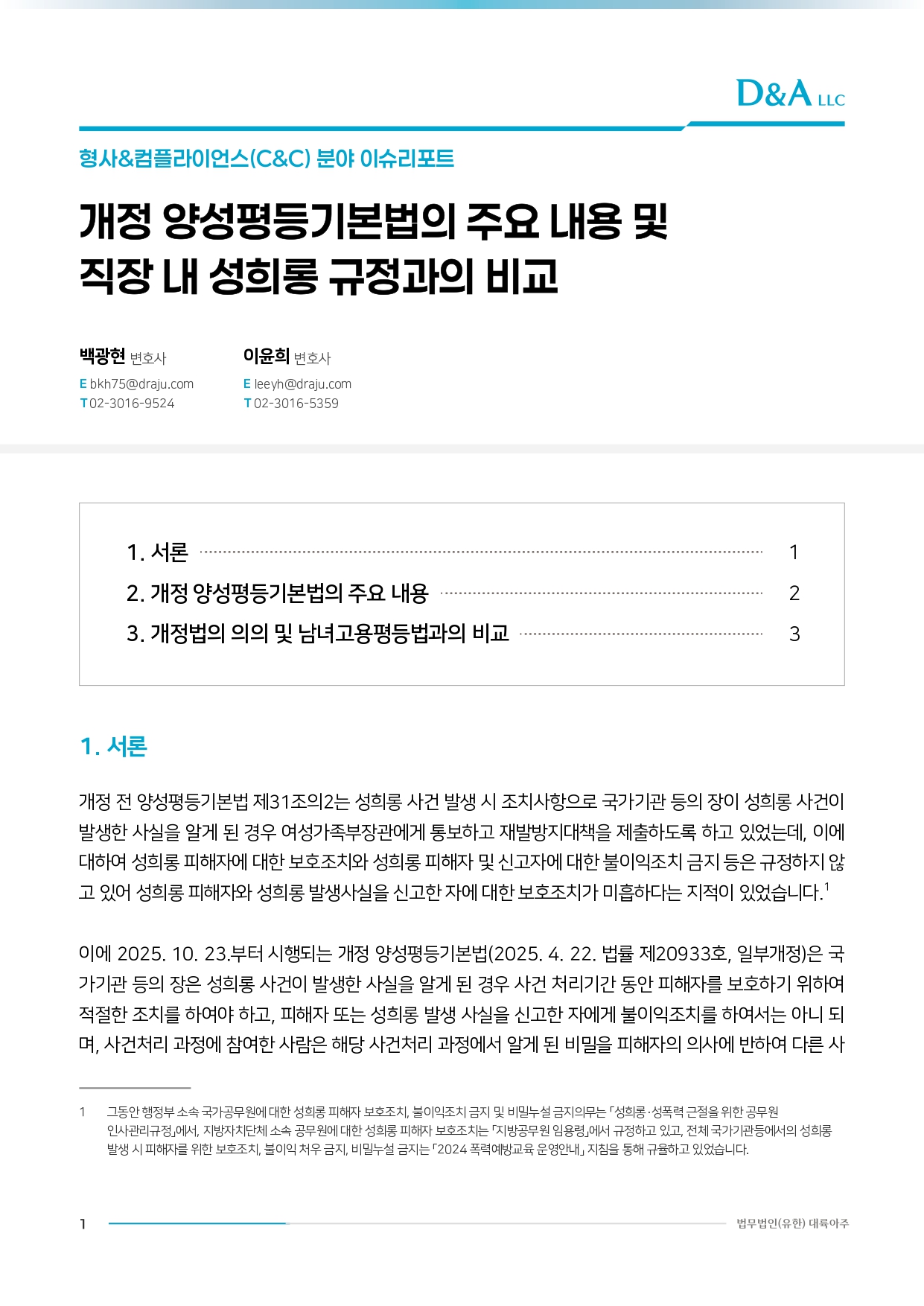 [법무법인(유한) 대륙아주] 형사_컴플라이언스 분야 이슈리포트 - 개정 양성평등기본법의 주요 내용 및 직장 내 성희롱 규정과의 비교